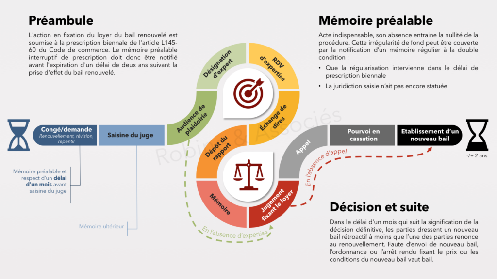 Mots clés : fixation judiciaire du loyer, mémoire préalable, prescription biennale, juge des loyers commerciaux, étapes, procédure judiciaire