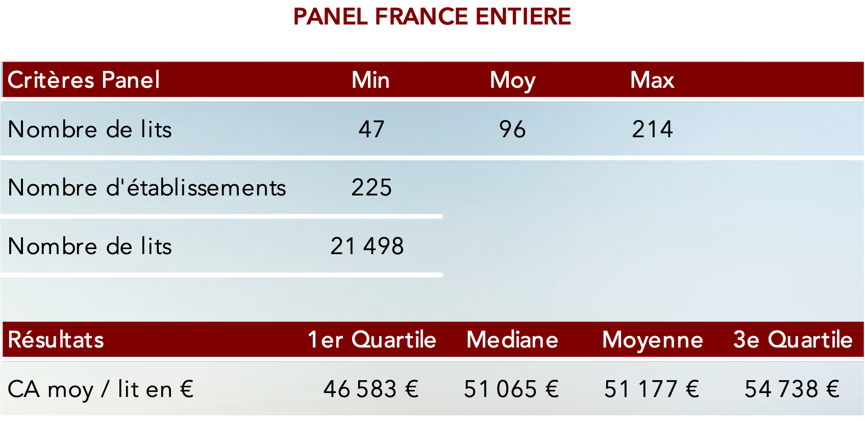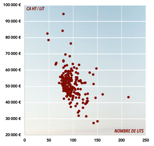 Il en ressort des niveaux de CA assez homogènes qui se polarisent en moyenne autour de 50 000 €/lit comme illustré ci-dessous.