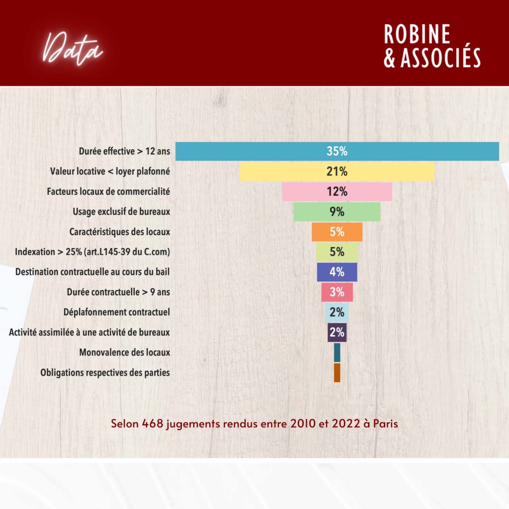 Selon près de 500 jugements rendus à Paris depuis 2010, il est frappant d’observer que plus d’un tiers des décisions concernent des déplafonnements visant une durée effective du bail supérieure à 12 ans.