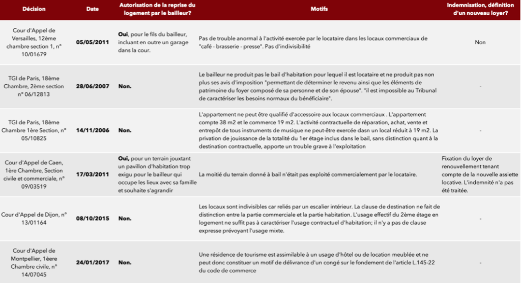 Il pourra être retenu en premier lieu que la reprise du logement en bail commercial est soumise à de nombreuses conditions, bien plus nombreuses sans doute que ce que laisse transparaitre l’origine légale.
